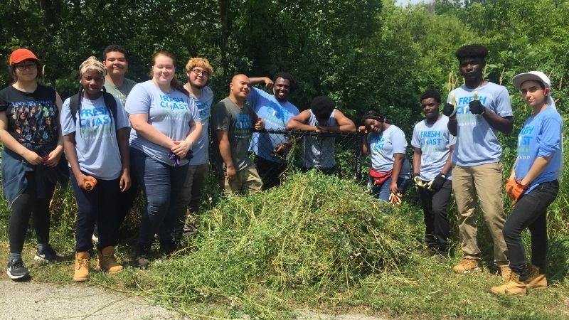 Programs like Fresh Coast Ambassadors not only provides skills training and labor to address undermaintained green infrastructure investments on public land, it introduces water career pathways to young people whose identities are significantly underrepresented in the green-blue sector while consequently fostering a deeper connection to community and nature.